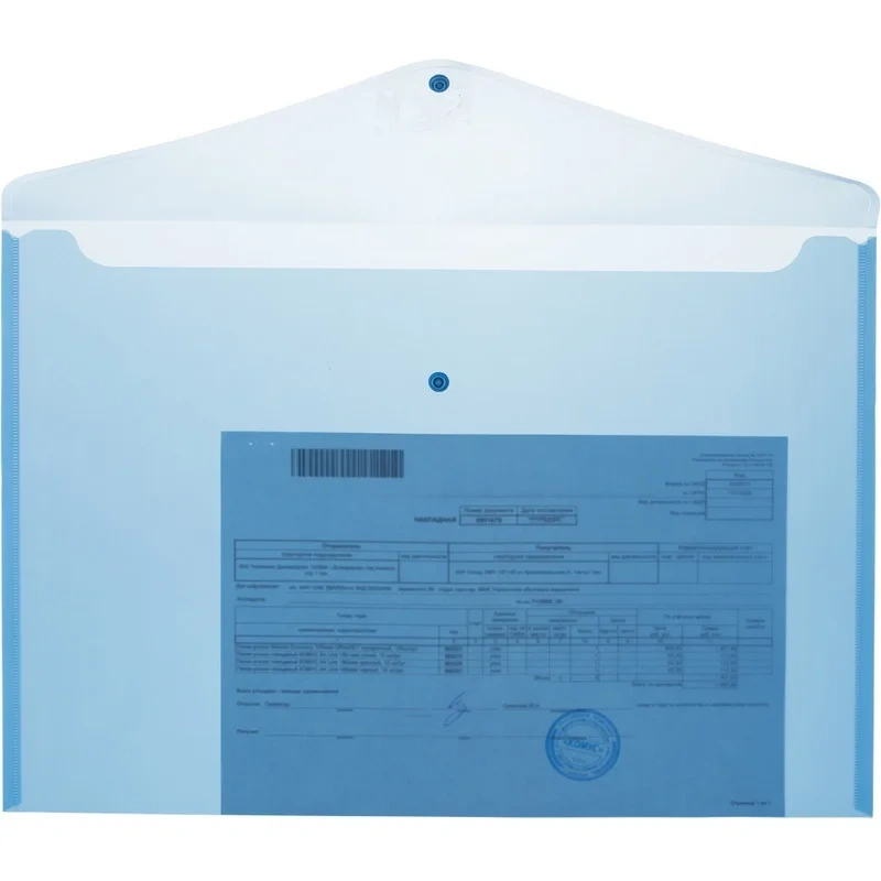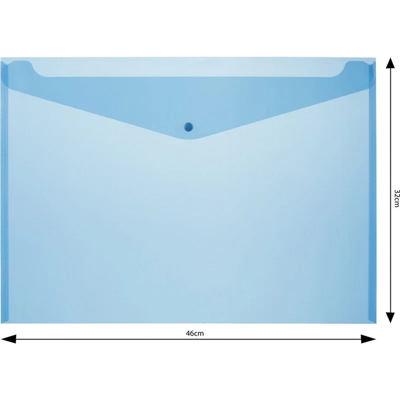 Папка-конверт формата А3 изготовлена из прозрачного пластика толщиной 0,18 мм синего цвета. Закрывается на кнопку. Предназначена для хранения и транспортировки бумажных документов. Надежно защищает документы от смятия и загрязнения.