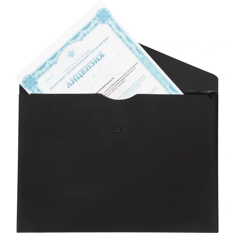 Папка-конверт на кнопке Attache А4, пл 180 мкм, 10шт/уп, черная непрозр