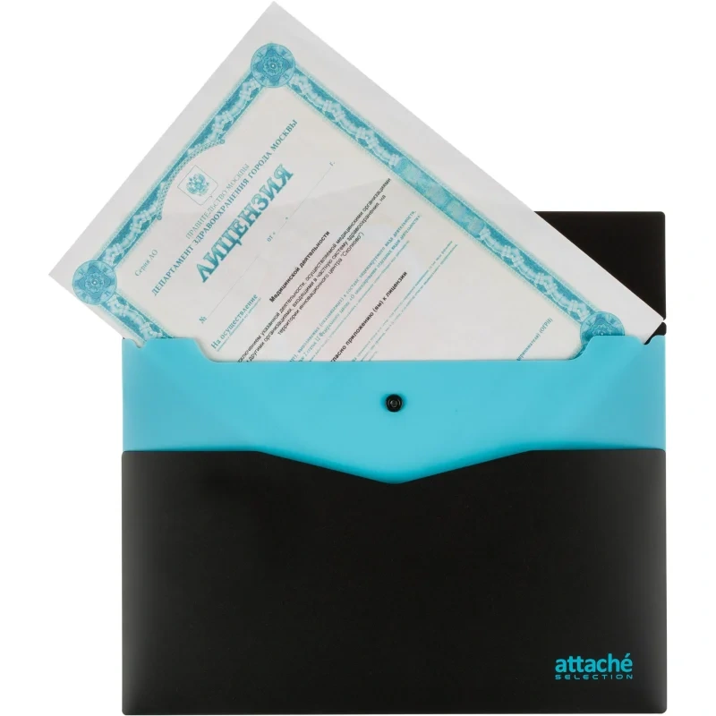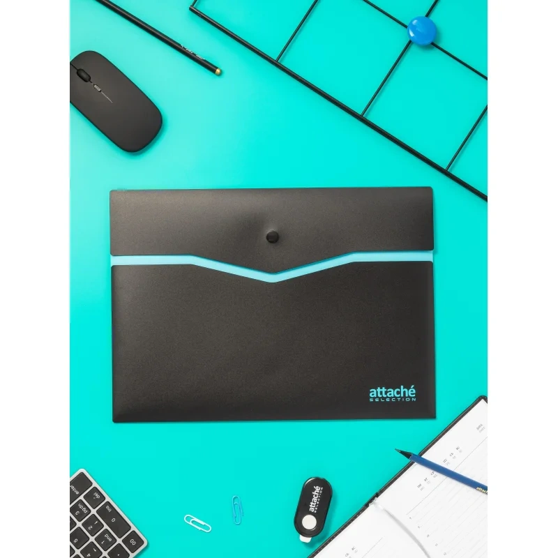 Папка-конверт на кнопке Attache Selection Black&Blue,А4