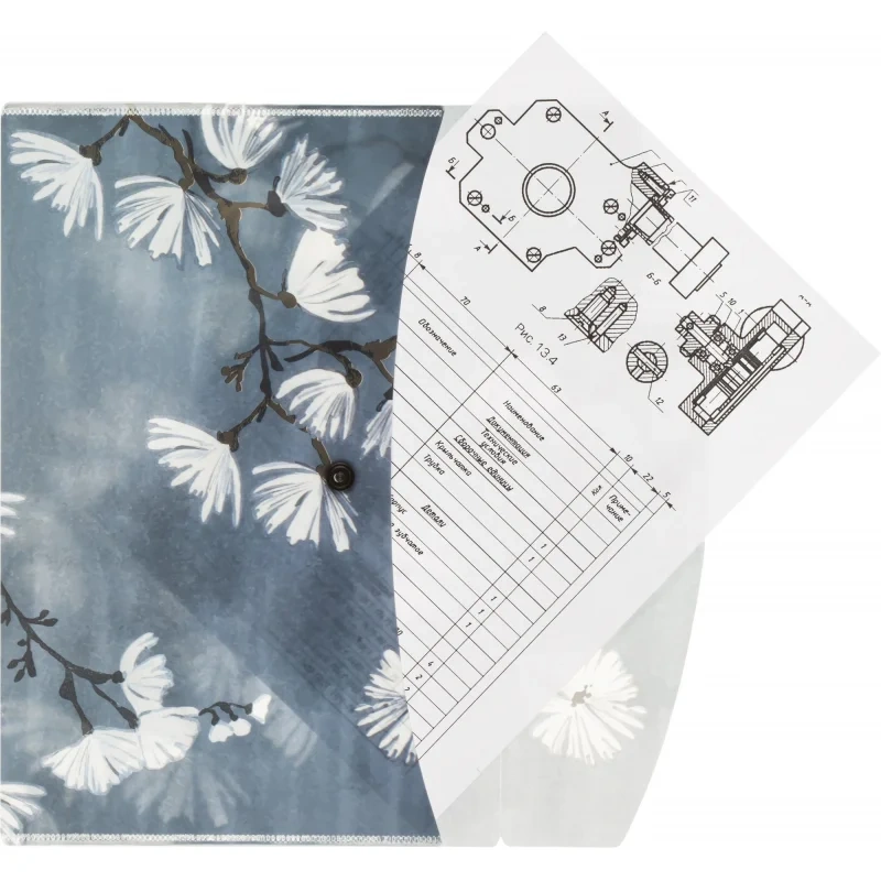 Папка-конверт на кнопке Attache Selection Японский сад, А5, 4шт/уп, 0,18мм