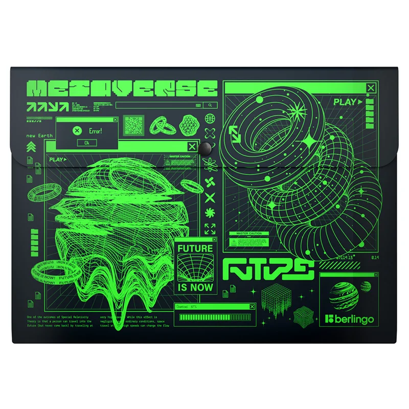 Папка-конверт на кнопке Berlingo 'Future Tech', А4, 330мкм, с рисунком