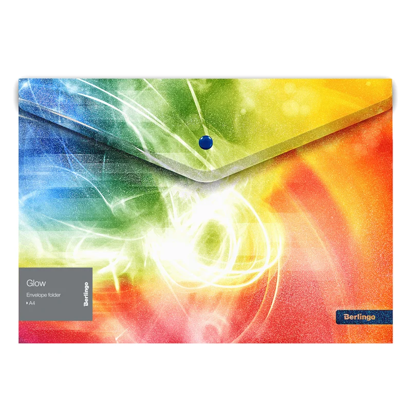 Папка-конверт на кнопке Berlingo 'Glow' А4, 180мкм, с рисунком, глиттер-эффект