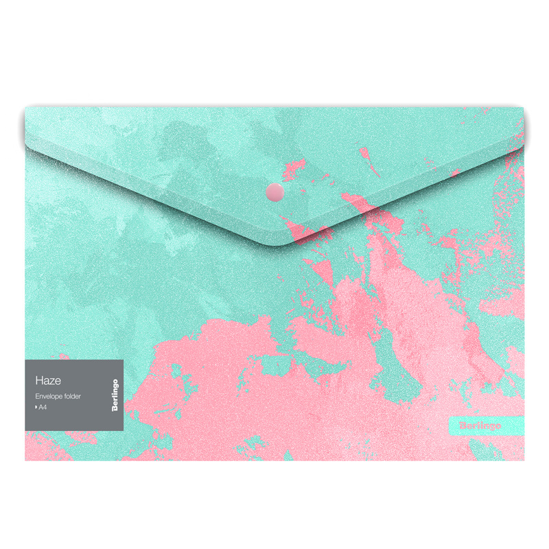 Папка-конверт на кнопке Berlingo 'Haze' А4, 180мкм, мятная/розовая, с рисунком, глиттер-эффект