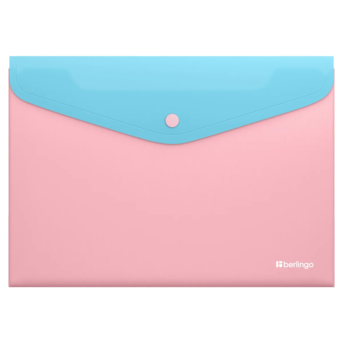 Папка-конверт на кнопке Berlingo 'Haze' А4, 200мкм, софт-тач, с цветным клапаном, голубая/розовая