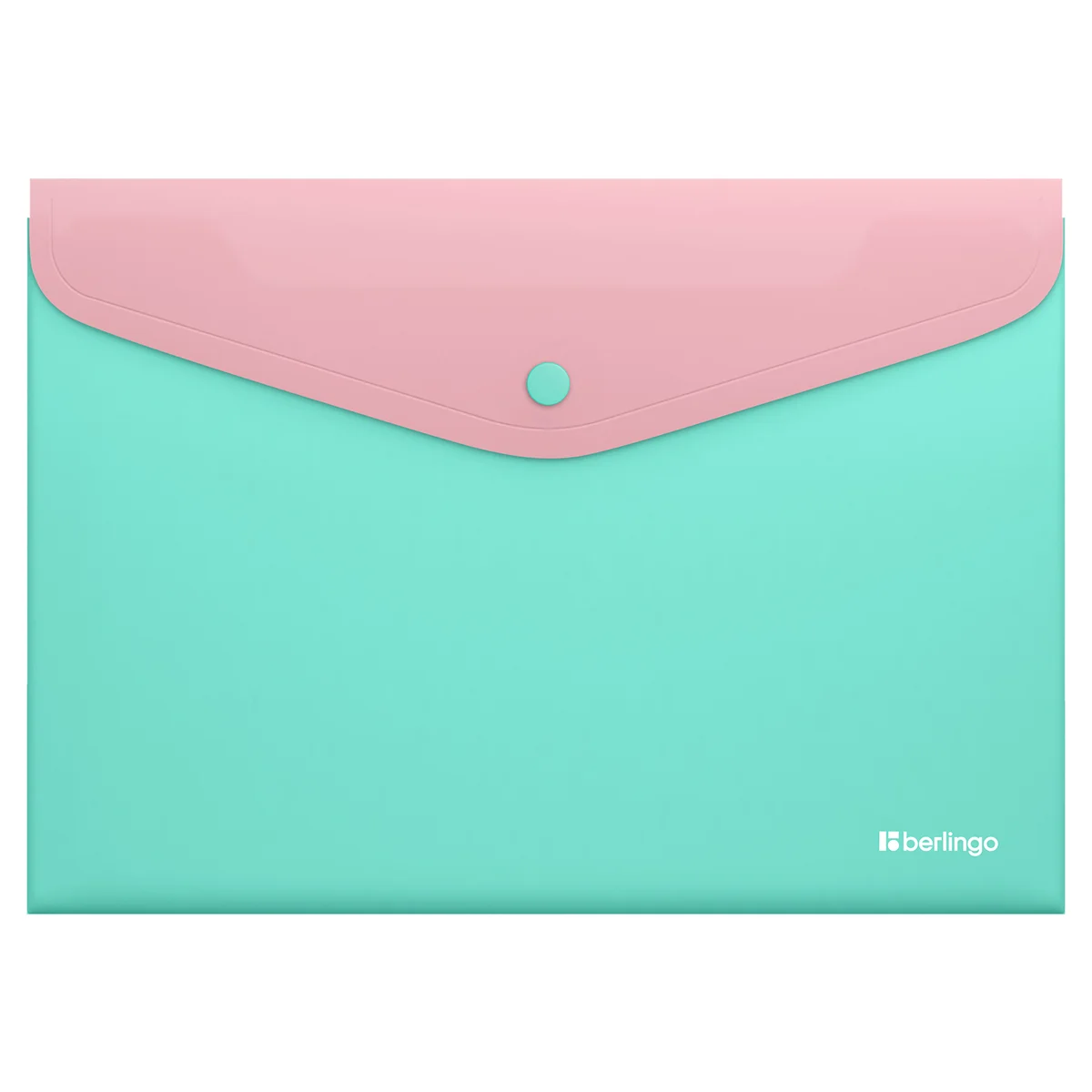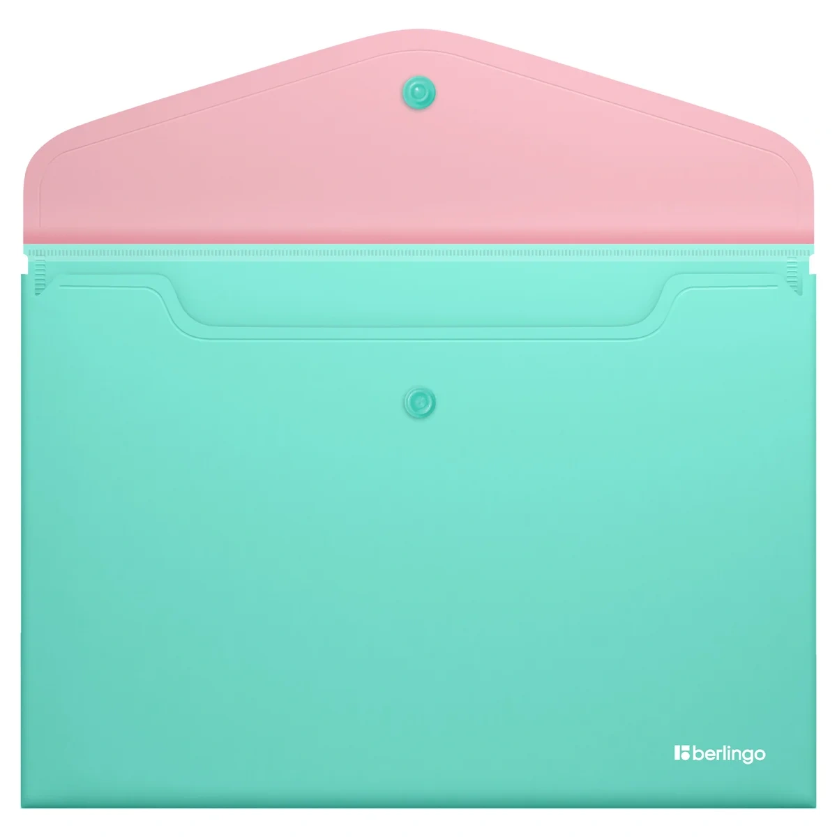 Папка-конверт на кнопке Berlingo 'Haze' А4, 200мкм, софт-тач, с цветным клапаном, розовая/мятная