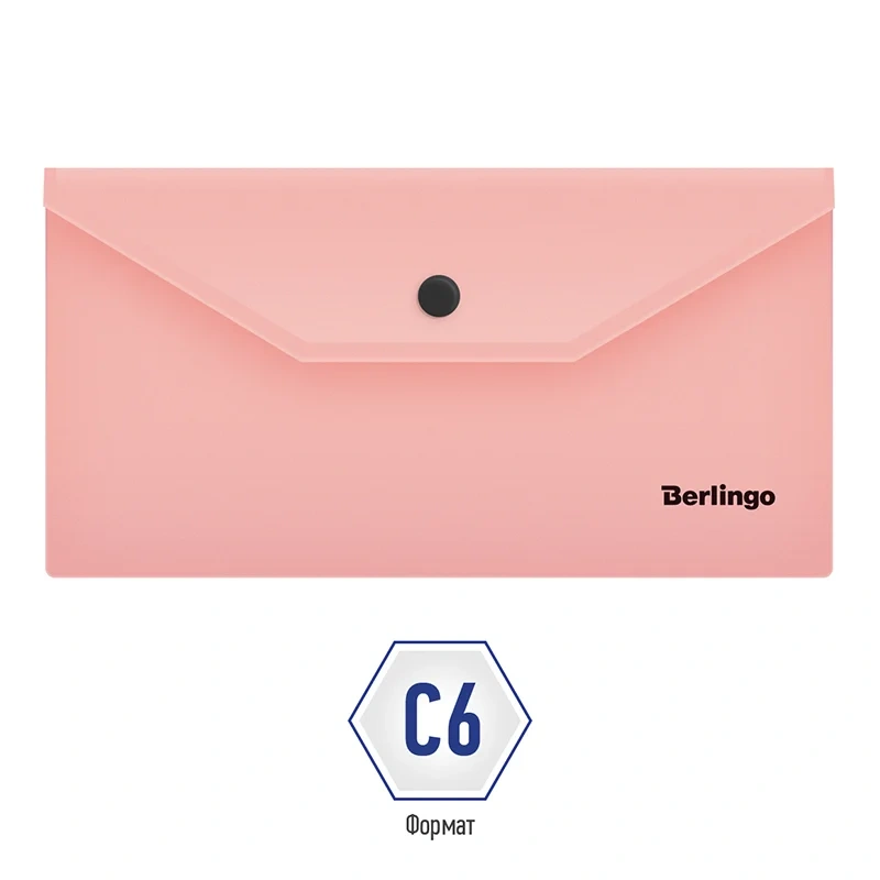 Папка-конверт на кнопке Berlingo 'Instinct', C6, 180мкм, фламинго