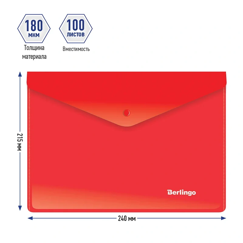 Пластиковая папка на кнопке Berlingo красная, A5+
