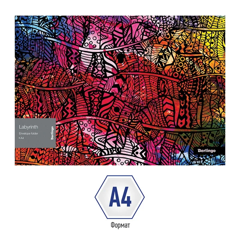Папка-конверт на кнопке Berlingo 'Labyrinth' A4, 180мкм, с рисунком