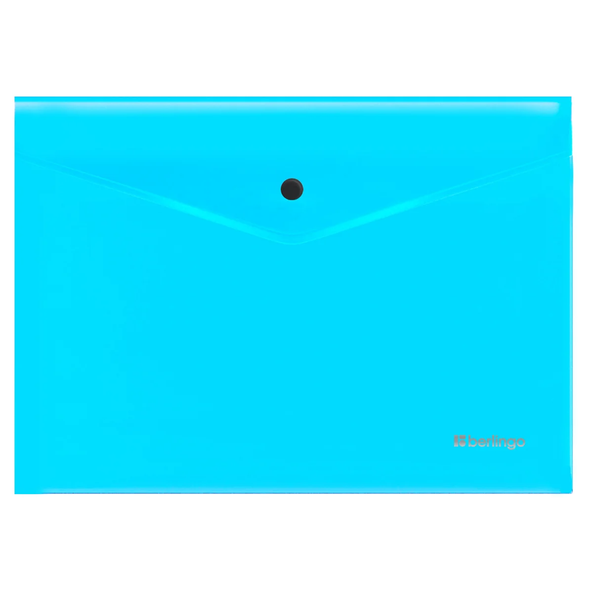 Папка-конверт на кнопке Berlingo 'Neon' А4, 200мкм, прозрачная голубой неон