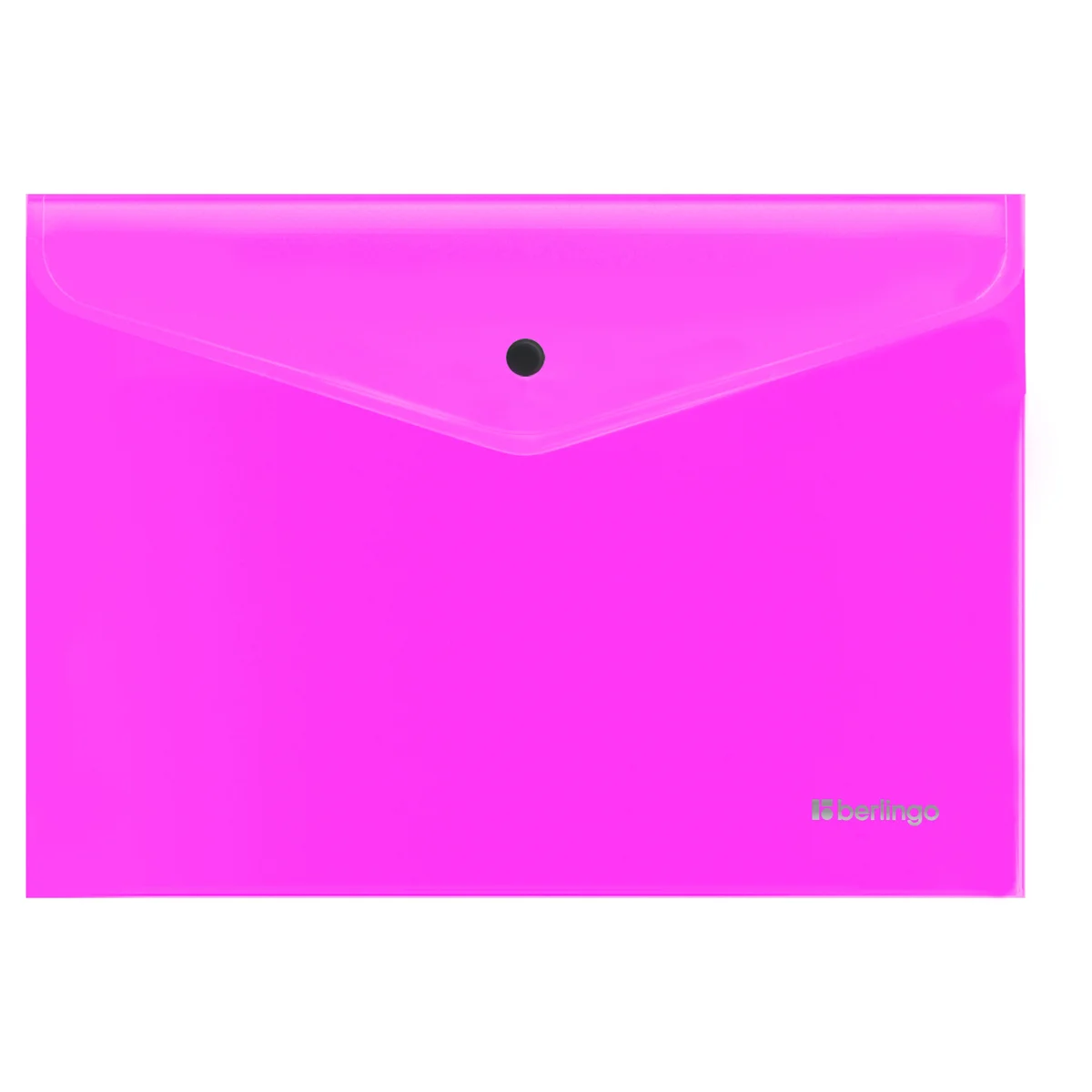 Папка-конверт на кнопке Berlingo 'Neon' А4, 200мкм, прозрачная розовый неон