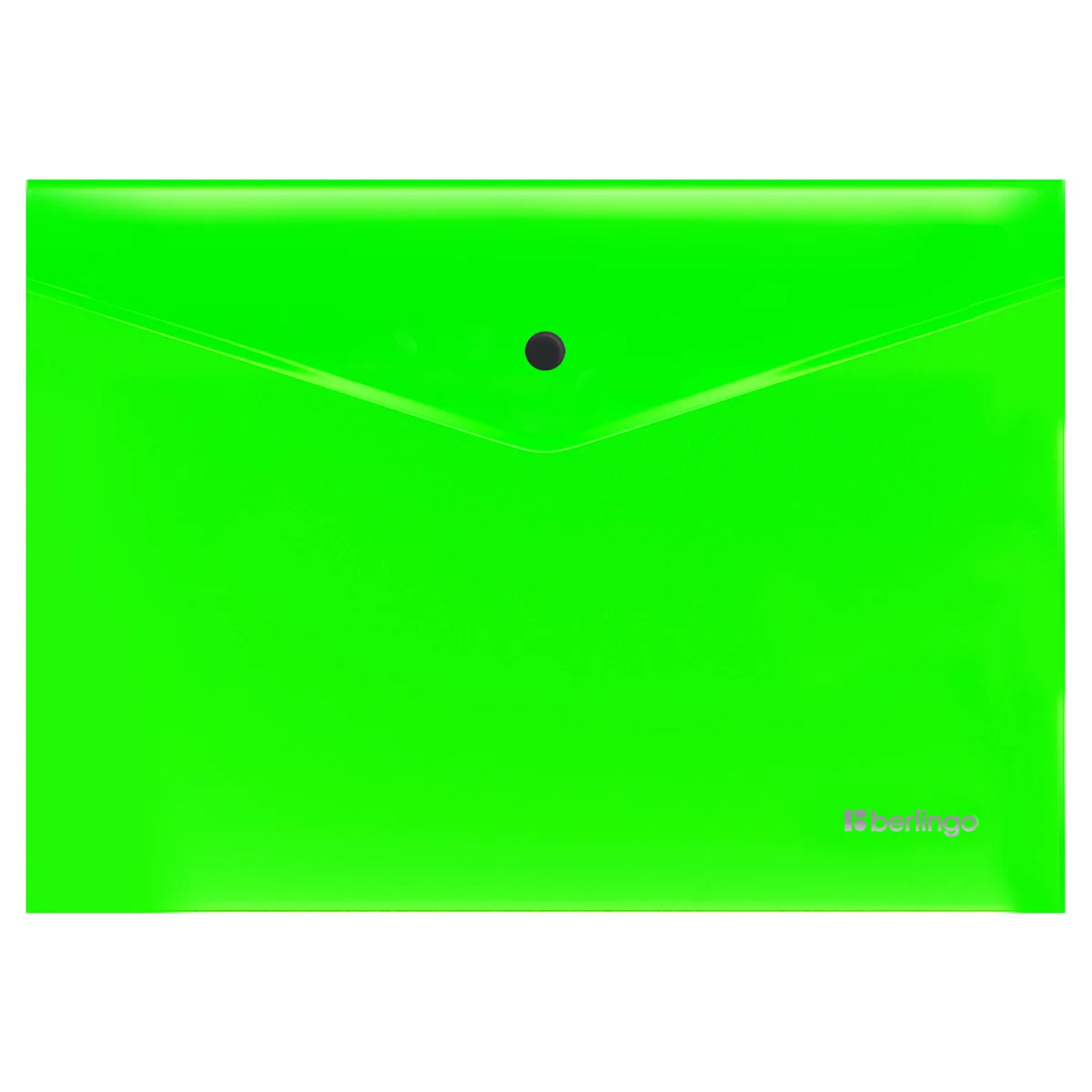 Папка-конверт на кнопке Berlingo 'Neon' А4, 200мкм, прозрачная зеленый неон