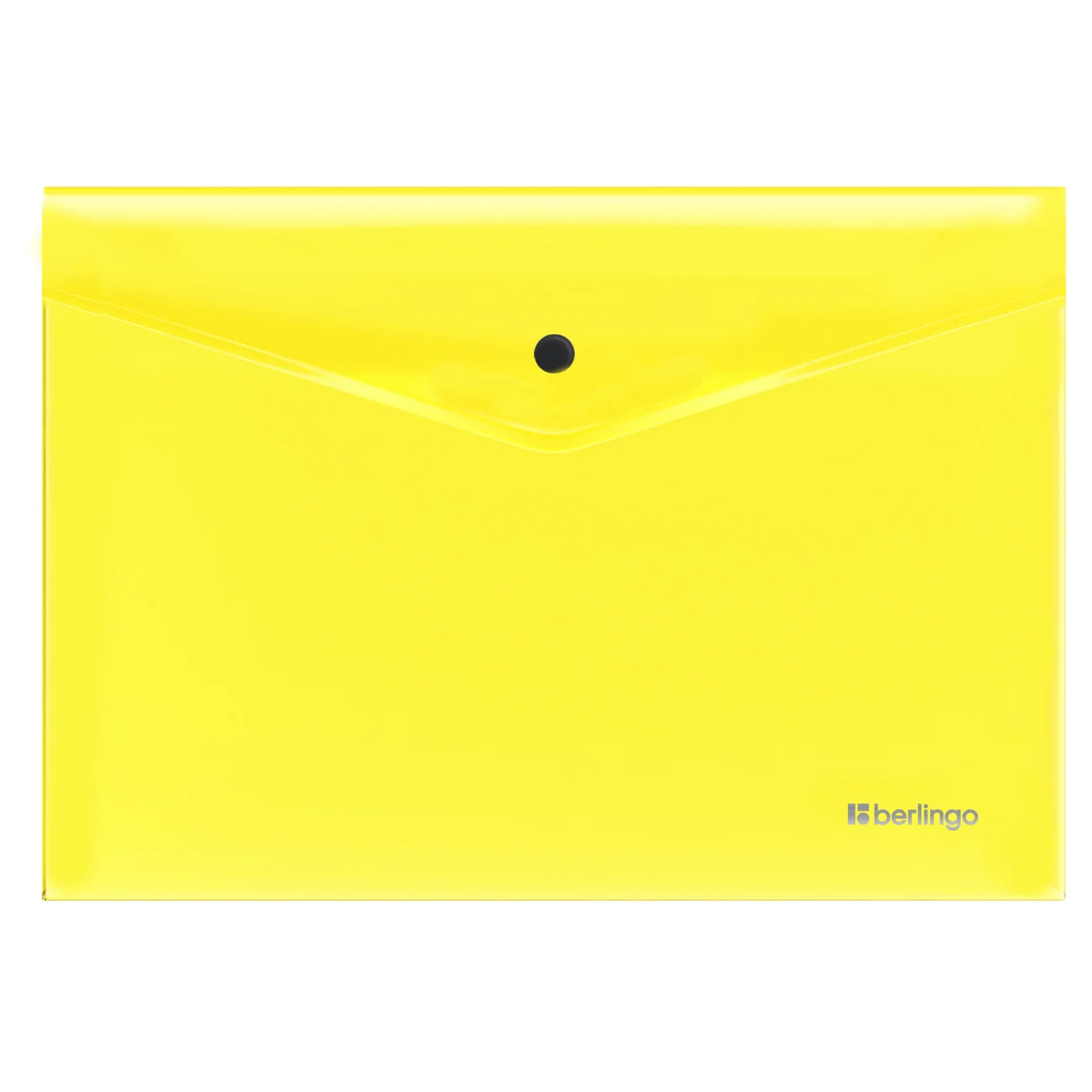 Папка-конверт на кнопке Berlingo 'Neon' А4, 200мкм, прозрачная желтый неон