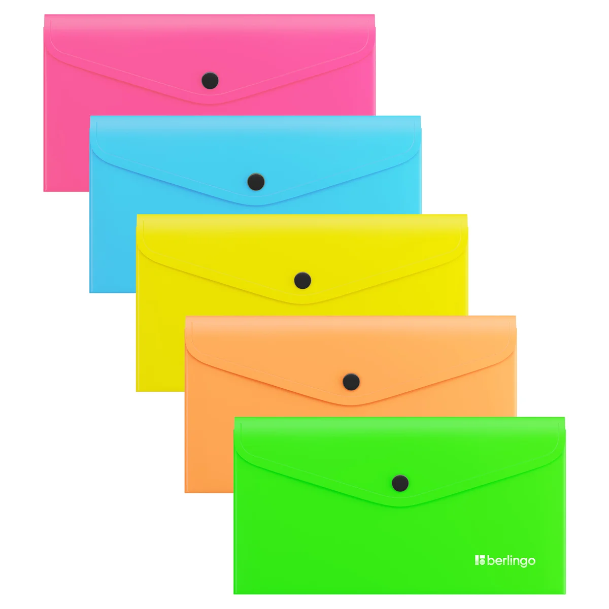 Папка-конверт на кнопке Berlingo 'Neon' С6, 200мкм, ассорти неоновых цветов