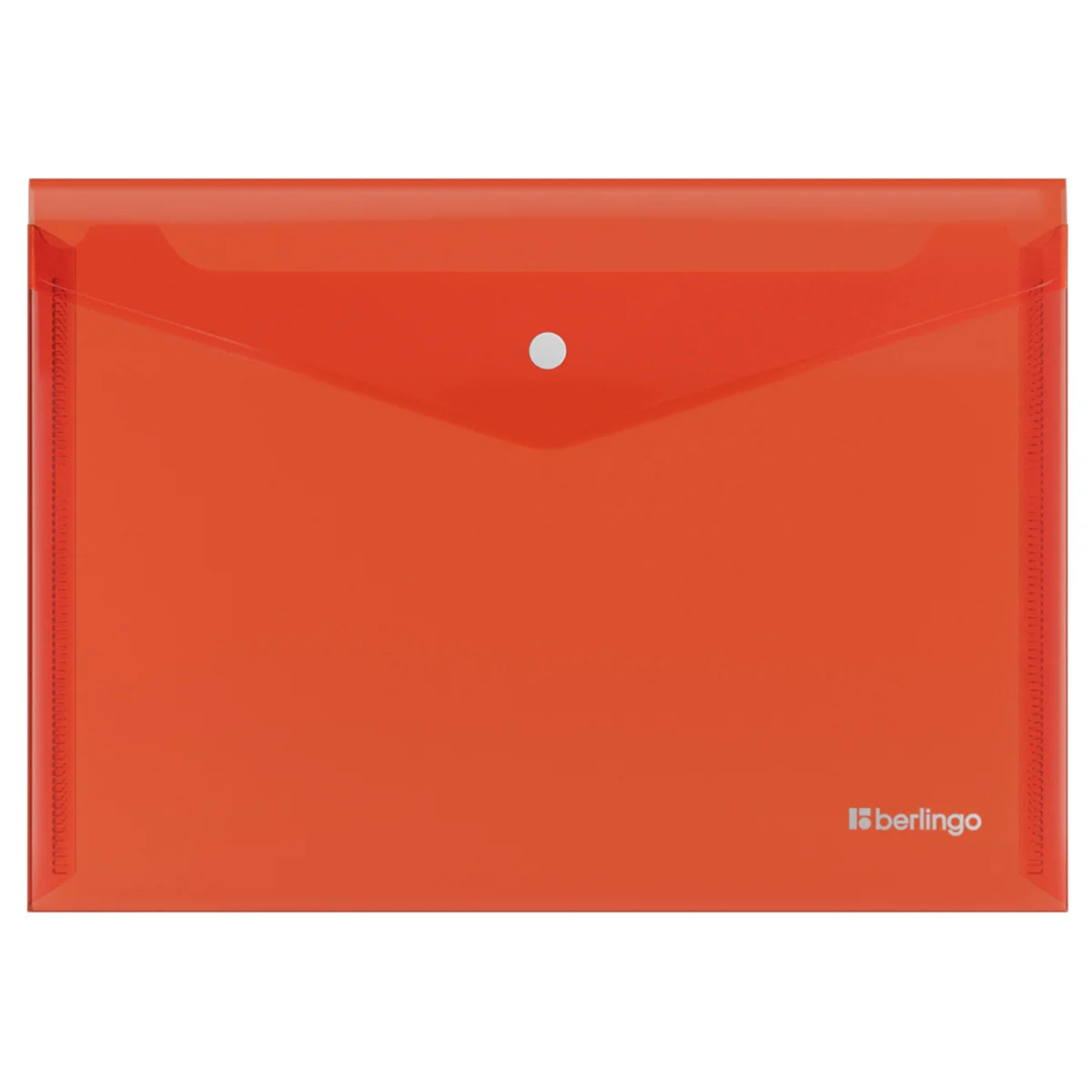Папка-конверт на кнопке Berlingo No Secret формата А4 (333*236 мм) предназначена для хранения документов и вмещает до 120 листов. Изготовлена из высококачественного полипропилена плотностью 200 мкм с глянцевой текстурой поверхности. Папка плотно закрывается на надёжную застёжку-кнопку, которая рассчитана на ежедневное использование и защищает документы от повреждений и загрязнений и станет отличным помощником в учёбе и работе. Насыщенный красный цвет в сочетании с белой контрастной кнопкой и серебристым логотипом. Полупрозрачная поверхность.