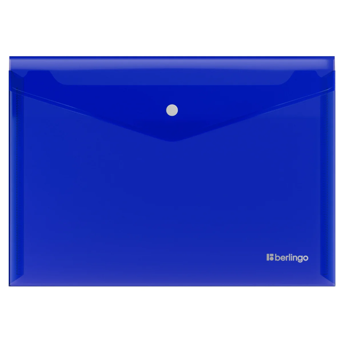 Папка-конверт на кнопке Berlingo No Secret формата А4 (333*236 мм) предназначена для хранения документов и вмещает до 120 листов. Изготовлена из высококачественного полипропилена плотностью 200 мкм с глянцевой текстурой поверхности. Папка плотно закрывается на надёжную застёжку-кнопку, которая рассчитана на ежедневное использование и защищает документы от повреждений и загрязнений и станет отличным помощником в учёбе и работе. Насыщенный синий цвет в сочетании с белой контрастной кнопкой и серебристым логотипом. Полупрозрачная поверхность.