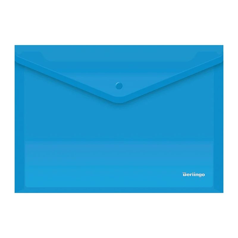 С папкой-конвертом на кнопке Berlingo формата А4 все важные документы будут под надёжной защитой. Изделие яркого синего цвета. Папка плотно закрывается на кнопку, которая рассчитана на ежедневное использование. Папка-конверт размером 330*235 мм и толщиной 180 мкм изготовлена из пластика, который защищает изделие от сминания и других повреждений. Изделие имеет горизонтальную ориентацию. Вместимость – 100 листов формата А4. Индивидуальная упаковка в пакет. • Вместимость, в листах: 100;• Материал: пластик;• Ориентация: горизонтальная;• Размер: 330*235 мм;• Способ фиксации: кнопка; • Текстура: глянцевая;• Толщина материала: 180 мкм;• Формат: А4;• Цвет: синий.