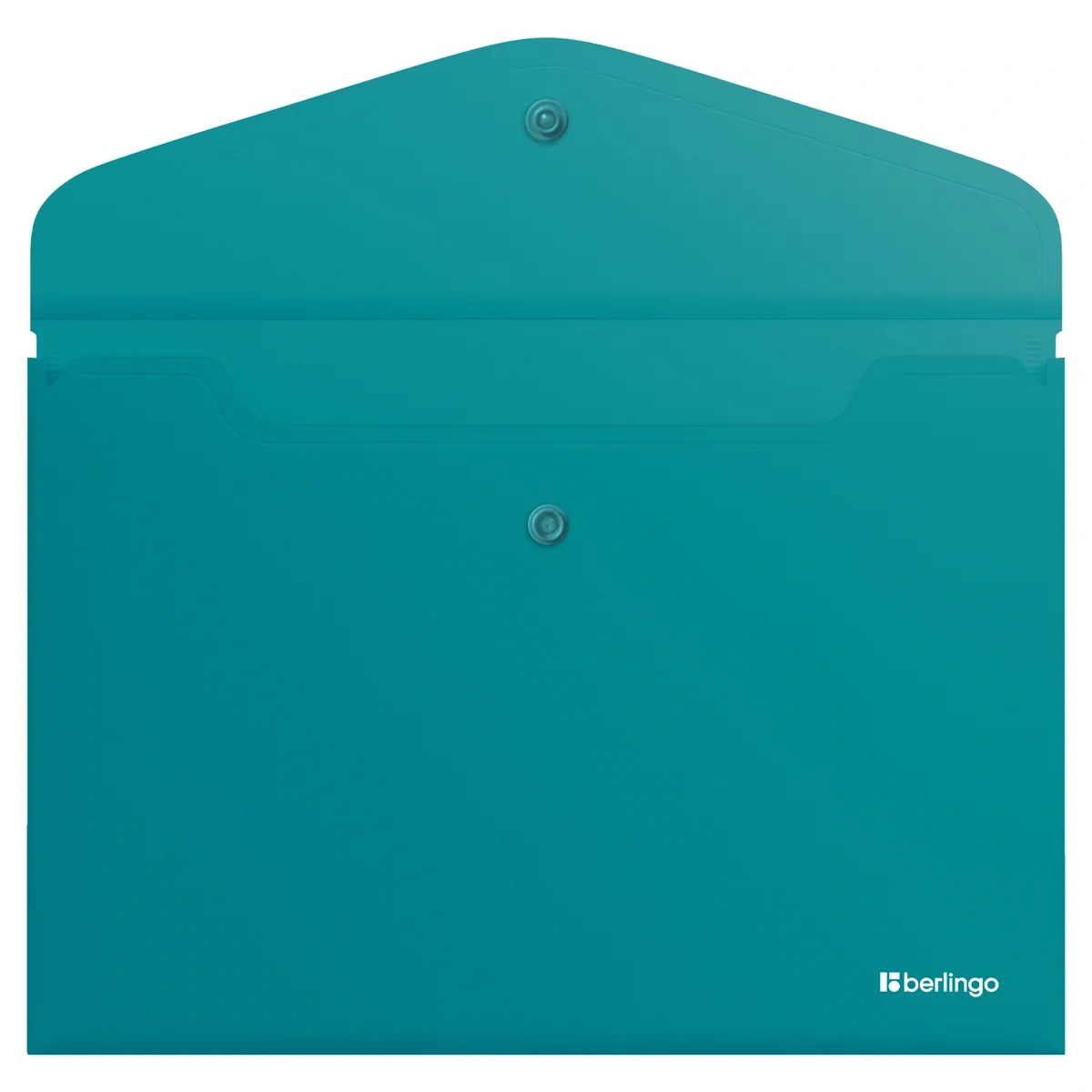 Папка-конверт на кнопке Berlingo 'Soft Touch', А4, 200мкм, софт-тач, бирюзовая