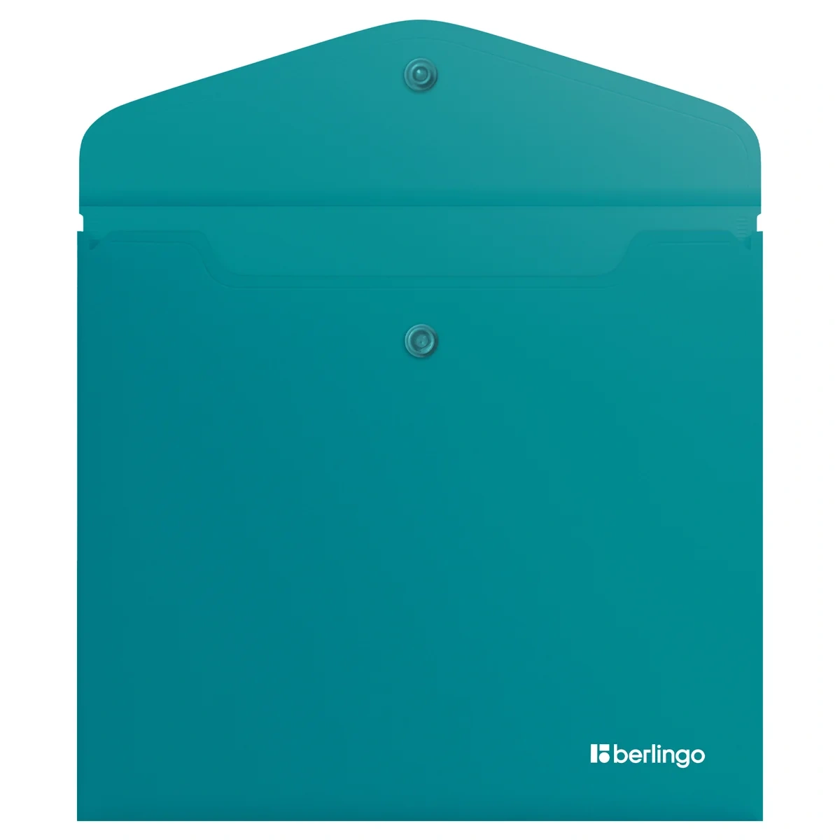 Папка-конверт на кнопке Berlingo 'Soft Touch', А5+, 200мкм, софт-тач, бирюзовая
