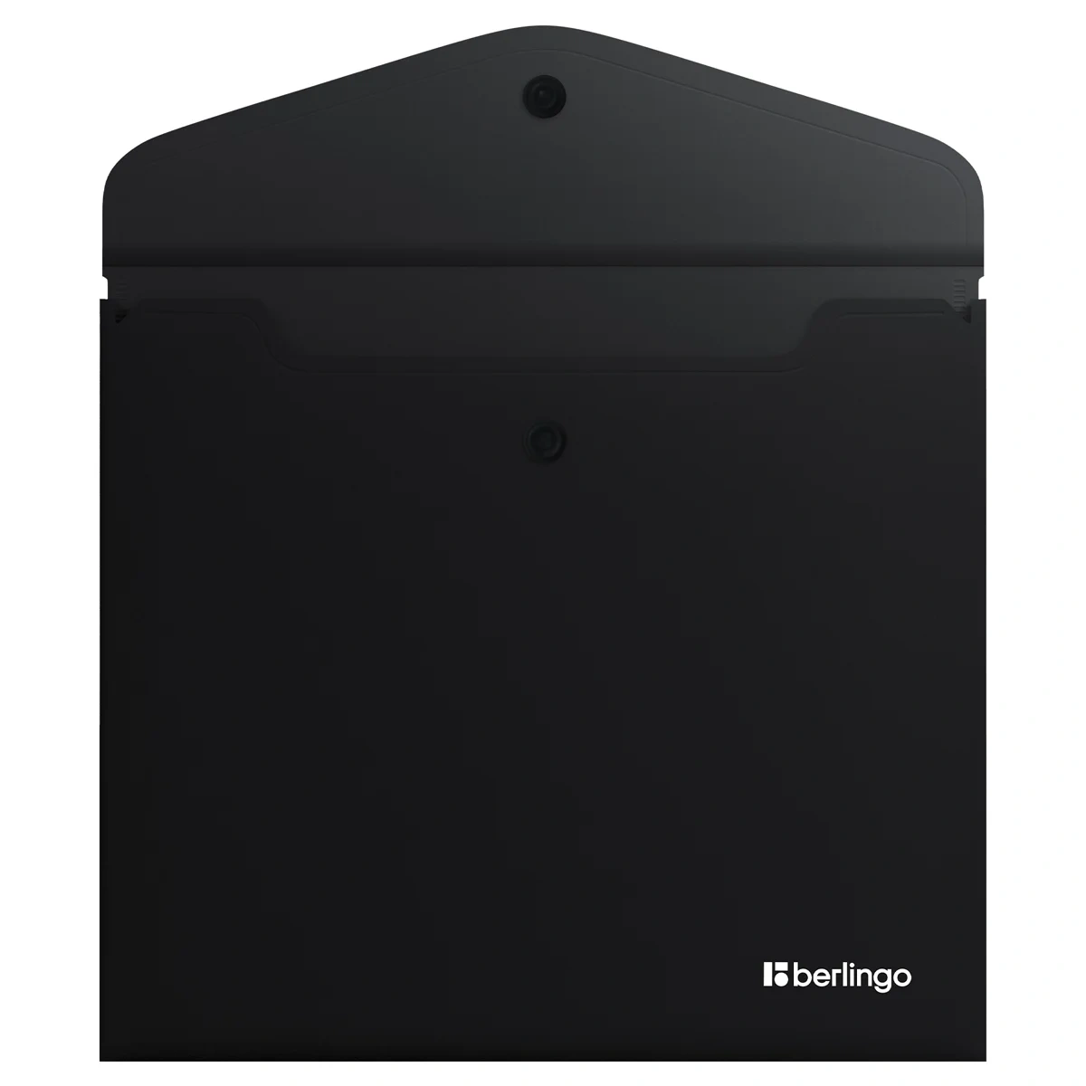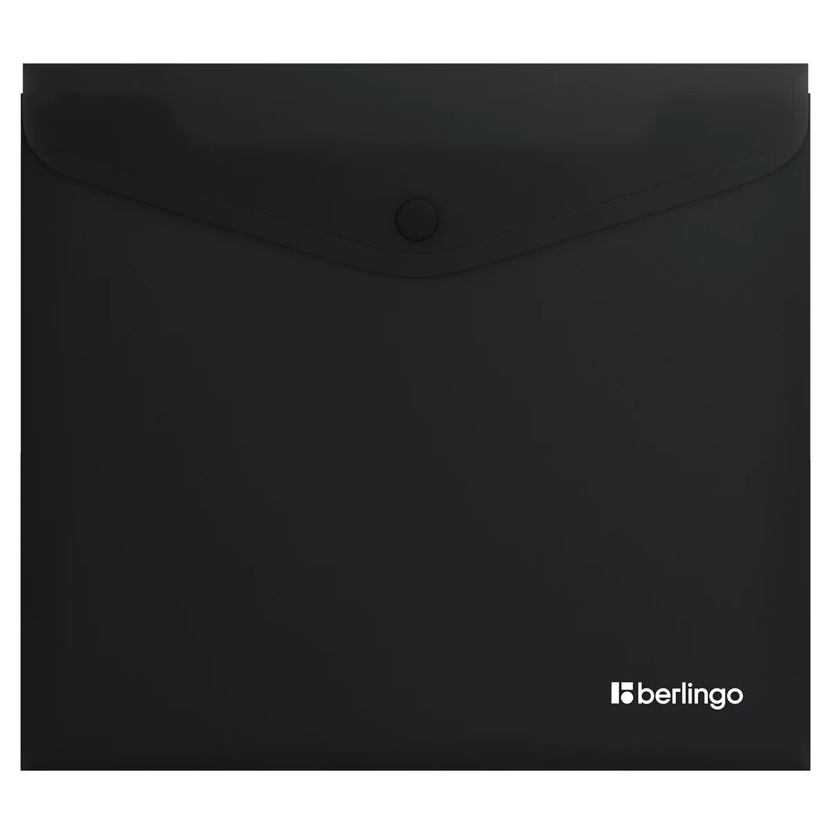 Папка-конверт на кнопке Berlingo 'Soft Touch', А5+, 200мкм, софт-тач, черная