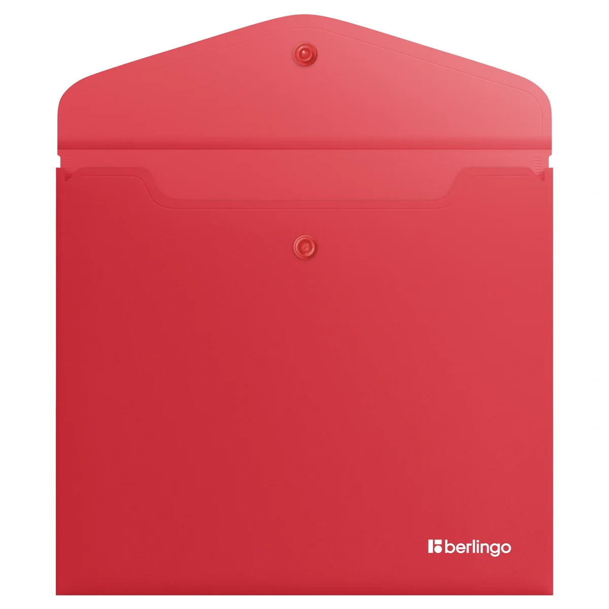 Пластиковая папка-конверт на кнопке Berlingo 'Soft Touch' формата А5+. Уникальная матовая бархатистая софт-тач поверхность. Яркий коралловый цвет в сочетании с кнопкой в цвет поверхности и белым логотипом. Надежная застежка-кнопка. Быстрый доступ к документам. Изготовлена из высококачественного полипропилена. Предназначена для хранения документов. Толщина 200 мкм. Вмещает до 100 листов. Упаковка в прозрачный пакет по форме на 12 шт. Индивидуальный штрих-код на каждой папке-конверте на съемном стикере с информацией.