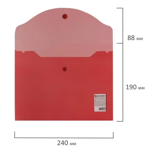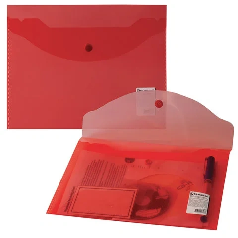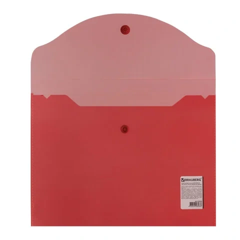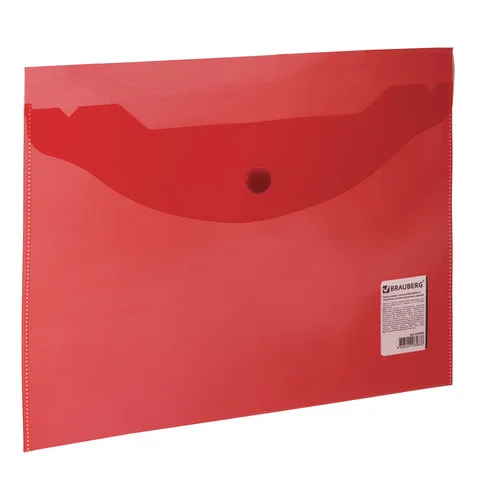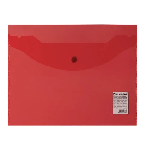 Пластиковая папка на кнопке Brauberg красная прозрачная, А5