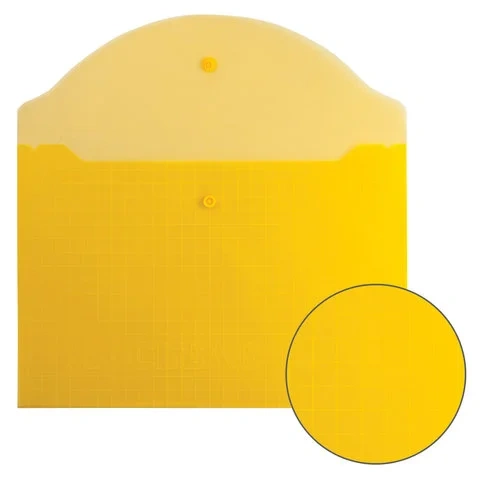 Папка-конверт с гладкой фактурой формата А4 изготовлена из плотного тонированного пластика толщиной 150 мкм. Закрывается на защелку-кнопку, что делает удобным частое использование и обеспечивает быстрый доступ к ее содержимому. Папка способна вместить до 100 листов стандартной плотности.