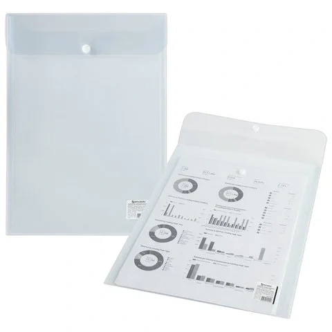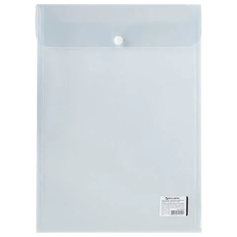 Пластиковая папка на кнопке Brauberg прозрачная, А4, 224978