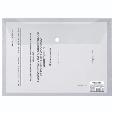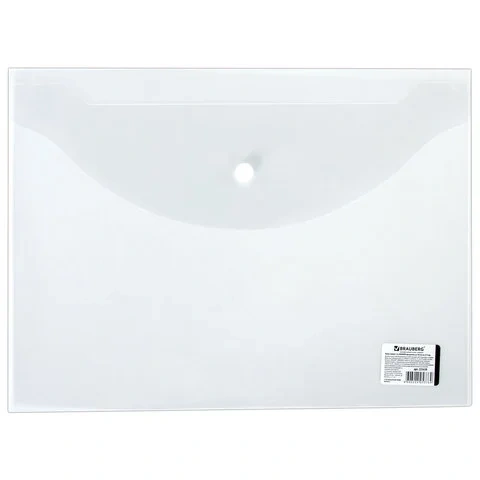 Пластиковая папка на кнопке Brauberg прозрачная, А4