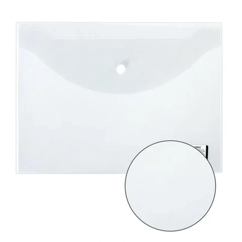 Папка-конверт с гладкой фактурой формата А4 изготовлена из плотного прозрачного пластика толщиной 150 мкм. Закрывается на защелку-кнопку, что делает удобным частое использование и обеспечивает быстрый доступ к ее содержимому. Папка способна вместить до 100 листов стандартной плотности.