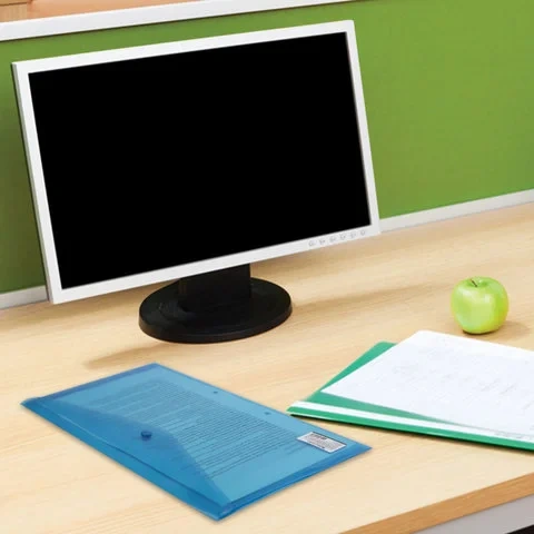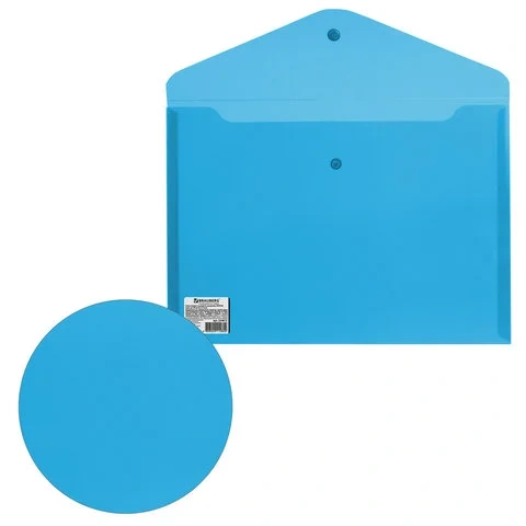 Папка-конверт с гладкой фактурой формата А4 изготовлена из плотного прозрачного пластика синего цвета толщиной 180 мкм. Закрывается на защелку-кнопку, что делает удобным частое использование и обеспечивает быстрый доступ к ее содержимому. Папка способна вместить до 100 листов стандартной плотности.