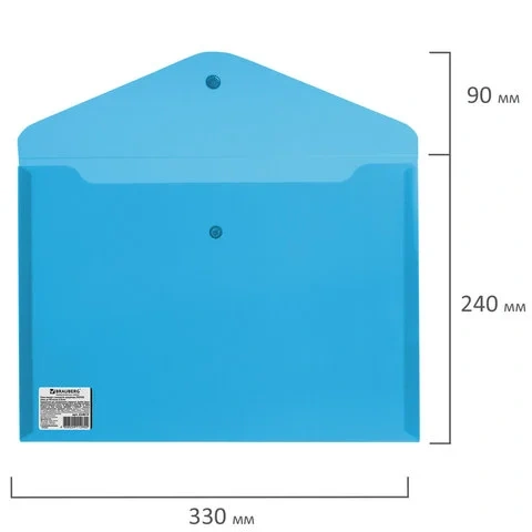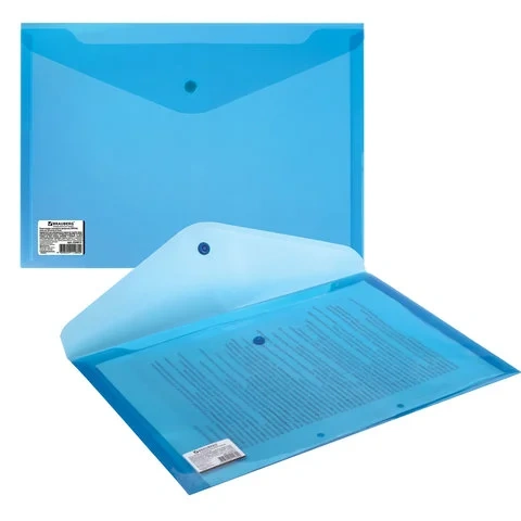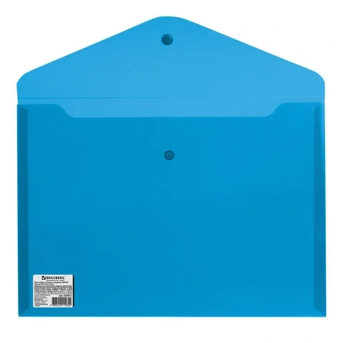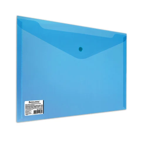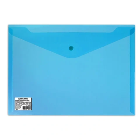Пластиковая папка на кнопке Brauberg прозрачная, синий, А4, 224813