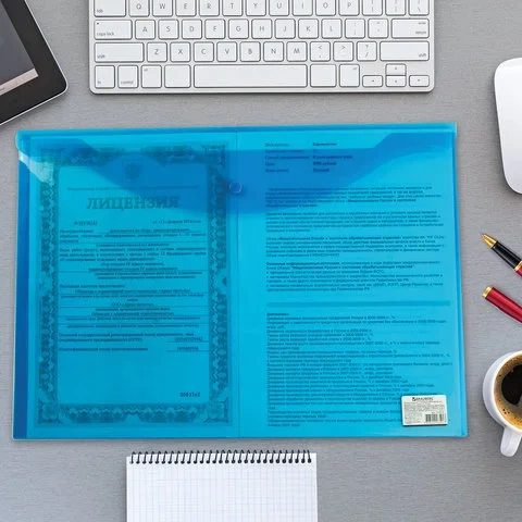 Пластиковая папка на кнопке Brauberg синяя, А3, 224034