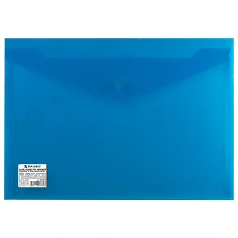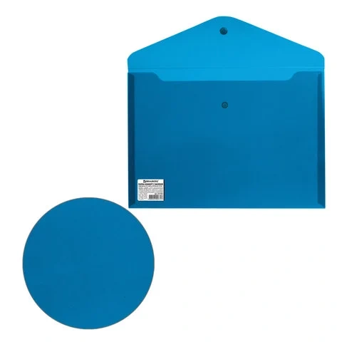 Пластиковая папка на кнопке Brauberg синяя непрозрачная, А4