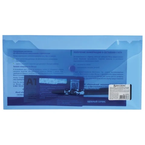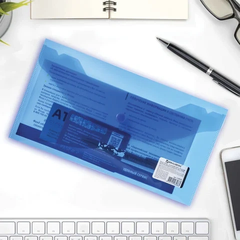 Отзывы о «Пластиковая папка на кнопке Brauberg синяя прозрачная, 250х135мм»