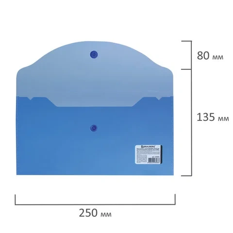 Пластиковая папка на кнопке Brauberg синяя прозрачная, 250х135мм