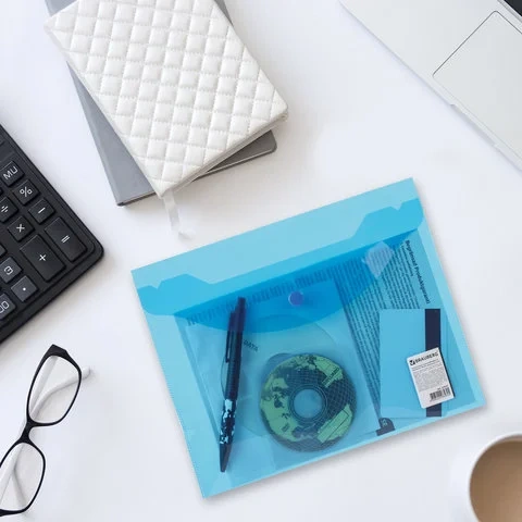 Отзывы о «Пластиковая папка на кнопке Brauberg синяя прозрачная, А5»
