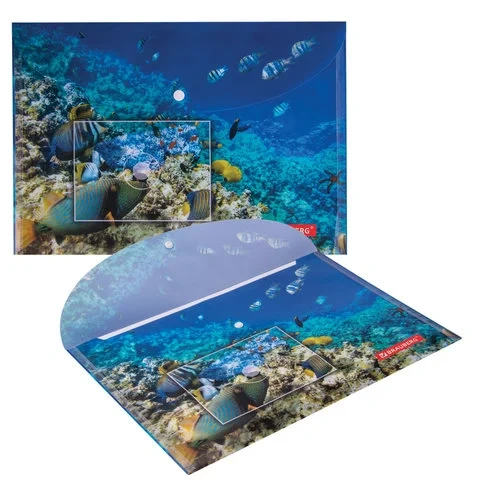 Пластиковая папка на кнопке Brauberg Водный мир, А4, 160мкм