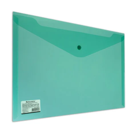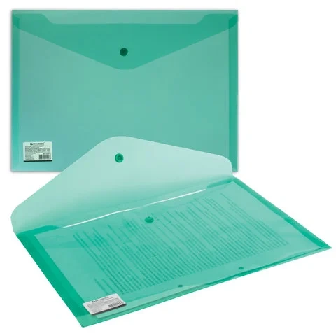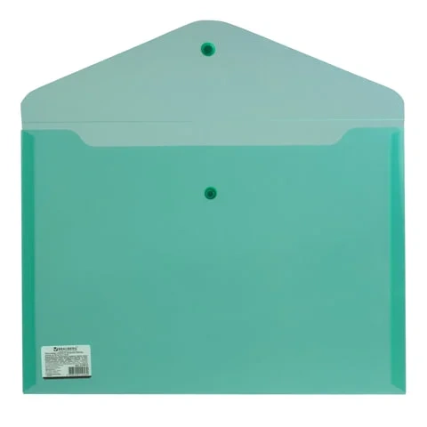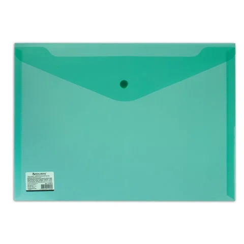 Пластиковая папка на кнопке Brauberg зеленая, А4, 224810