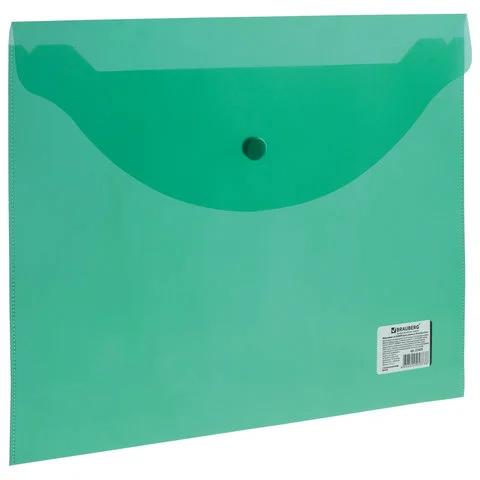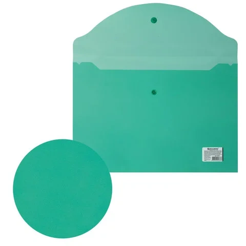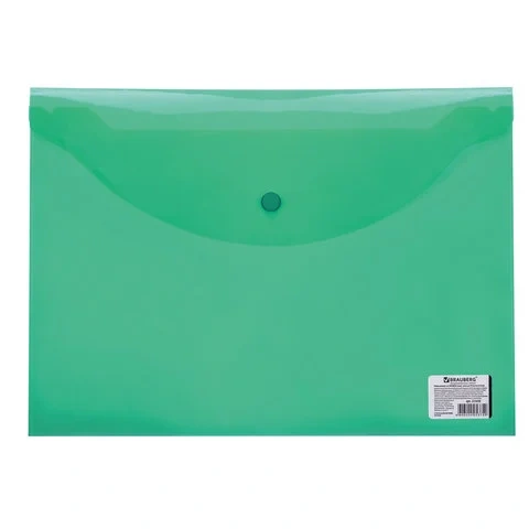 Пластиковая папка на кнопке Brauberg зеленая прозрачная, А4