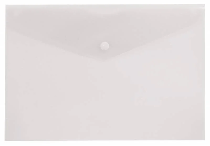 Конверт с кнопкой прозрачный. Формат А4. Выполнен из полипропилена толщиной 0,10мм. Фактура с тиснением. Цвет прозрачный.