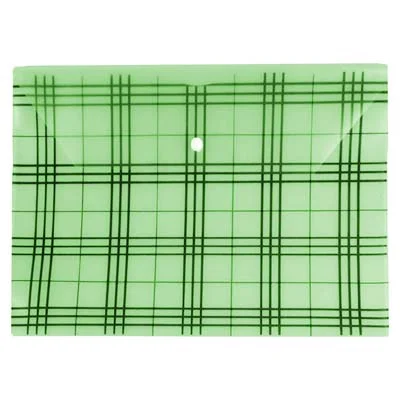 Пластиковая папка на кнопке Бюрократ Клетчатая зеленая, А4, PK801АGRN