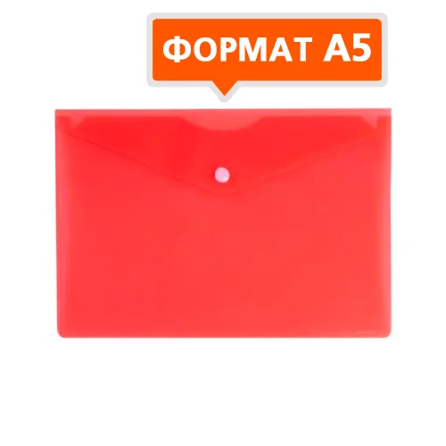 Пластиковая папка на кнопке Бюрократ красная, А5, PK804A5RED