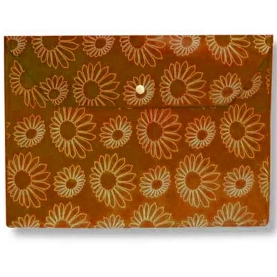 Пластиковая папка на кнопке Бюрократ Ромашки оранжевая непрозрачная, А4, PK823NOR