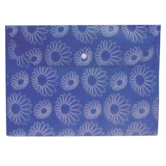 Пластиковая папка на кнопке Бюрократ Ромашки синяя, А4, PK820BLU