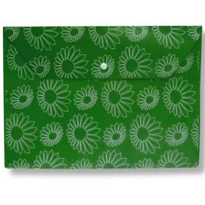 Пластиковая папка на кнопке Бюрократ Ромашки зеленая непрозрачная, А4, PK823NGRN