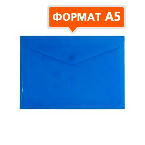 Пластиковая папка на кнопке Бюрократ синяя непрозрачная, А5, PK804A5NBLU