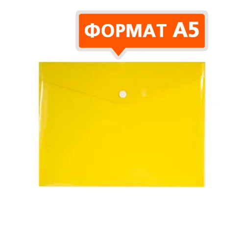 Пластиковая папка на кнопке Бюрократ желтая, А5, PK804A5YEL