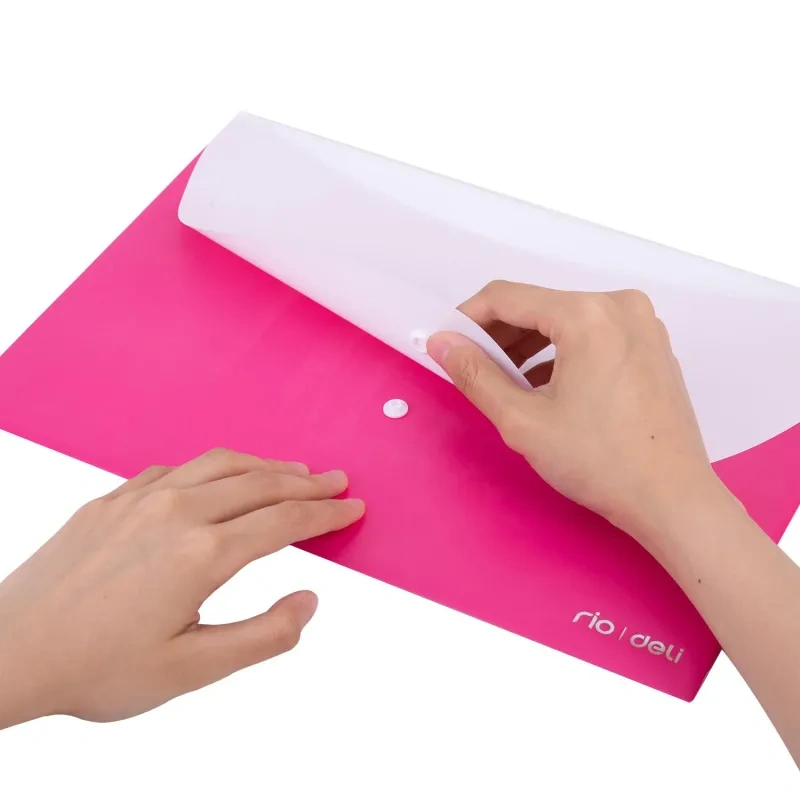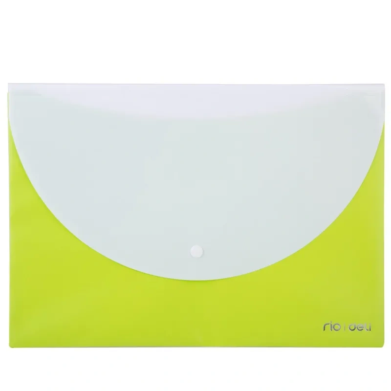 Горизонтальная папка-конверт на кнопке Deli, формата A4 (335×235 мм) из высококачественного прозрачного полипропилена плотностью 0,18 мм. Конверт легко открывается и закрывается, благодаря прочной и надежной пластиковой кнопке. Одна папка-конверт вмещает до 120 листов стандартной плотности. Долговечный материал имеет хорошую износостойкость, водонепроницаемый. Притяный яркий дизайн порадует каждого покупателя. Сочетается с другими изделиями коллекции Deli Rio.