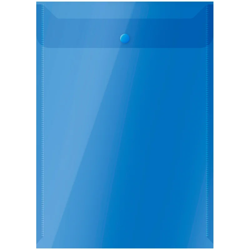 Папка-конверт на кнопке OfficeSpace А4, вертикальная, 150мкм, пластик, полупрозрачная, синяя