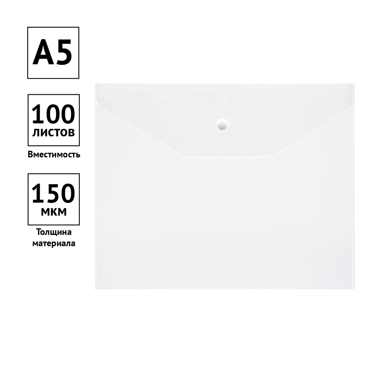 Папка-конверт на кнопке OfficeSpace А5 (190*240мм), 120мкм, пластик, прозрачная